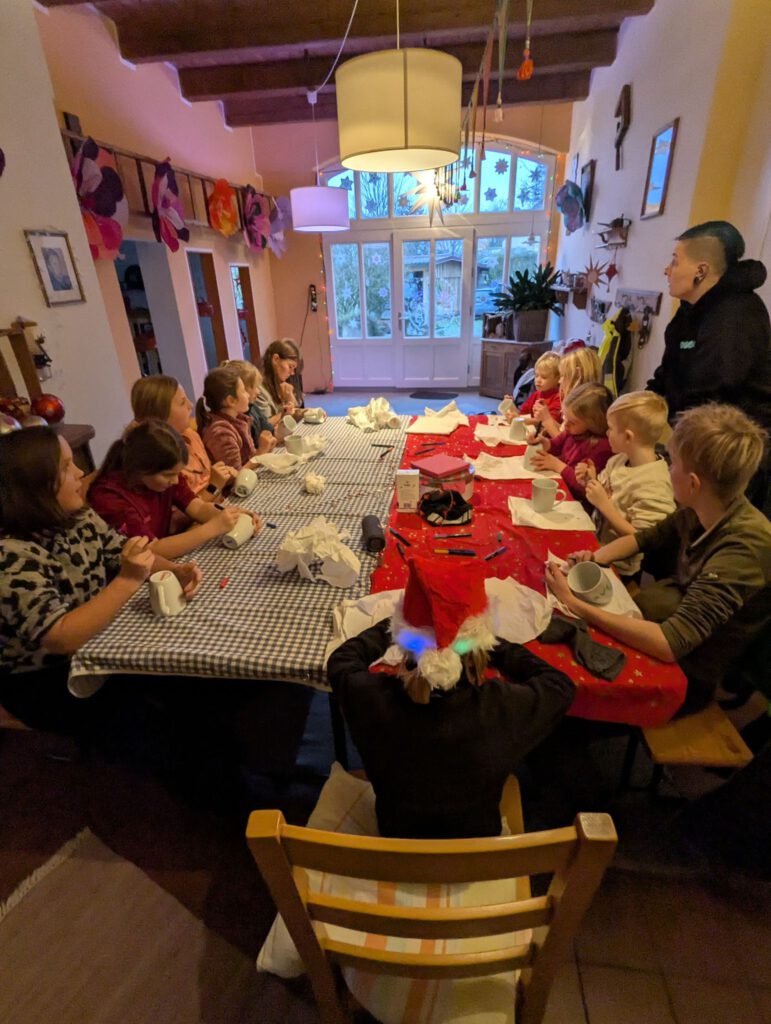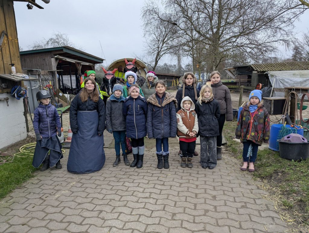 Bei der Kinderweihnachtsfeier wurde eine gemeinsame Kutschfahrt unternommen. Anschließend fand eine Bastelaktion statt, bei der die Kinder Tassen selbst bemalten. Außerdem wurden Waffeln gebacken, Kakao und Süßigkeiten genossen und zum Abschluss ein Lagerfeuer mit Spielen auf dem Reitplatz veranstaltet. Die Weihnachtsfeier sorgte für einen stimmungsvollen und gemütlichen Jahresausklang.