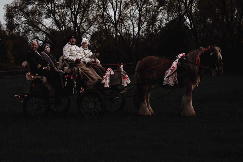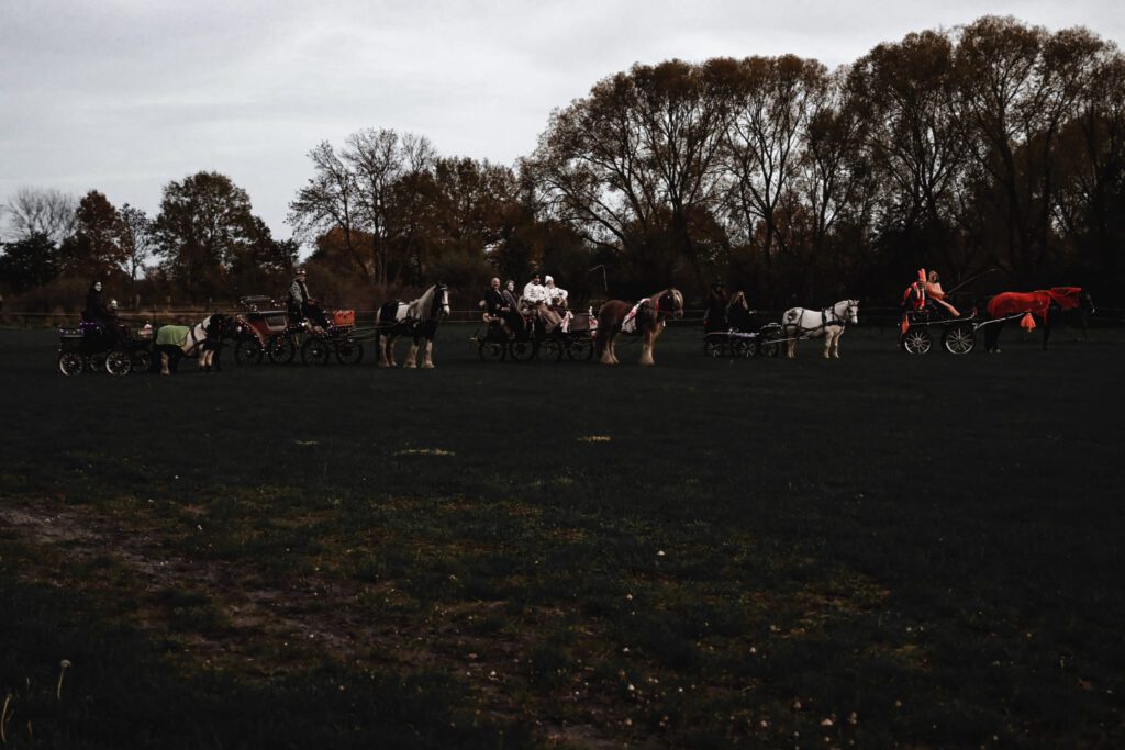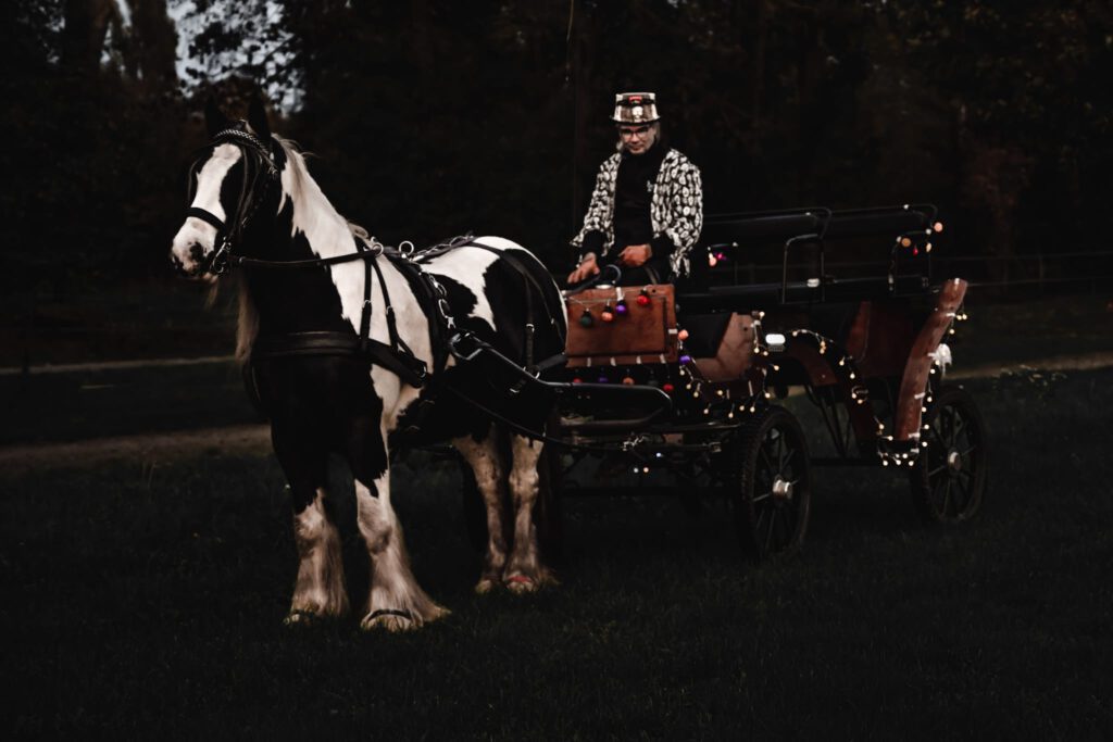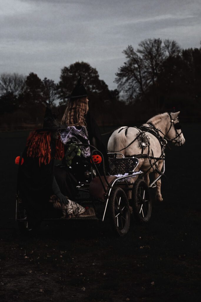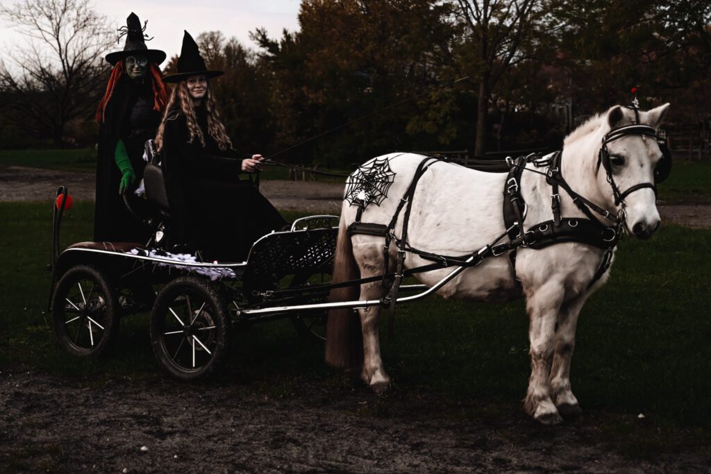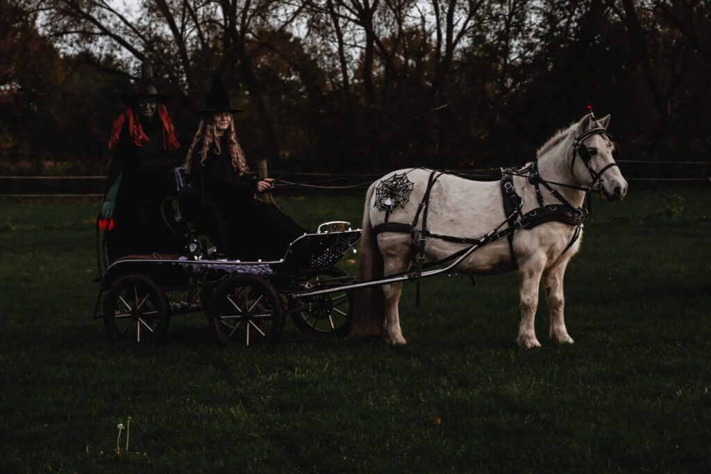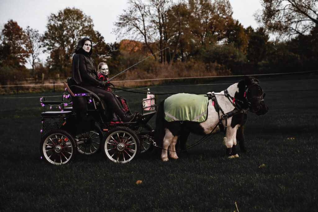 Den Abschluss des Jahres bildete die Halloween-Ausfahrt am 31.10.25 und die Kinder-Weihnachtsfeier des Reit- und Fahrvereins Zauberwald am 22. Dezember 2025. Passend zum Gruselfest kamen einige FahrerInnen des Vereins am Hof Zwirner verkleidet zusammen und starteten eine große Runde durch den Etelser Wald, nachdem auch die Pferde schaurig gruselig verkleidet wurden.